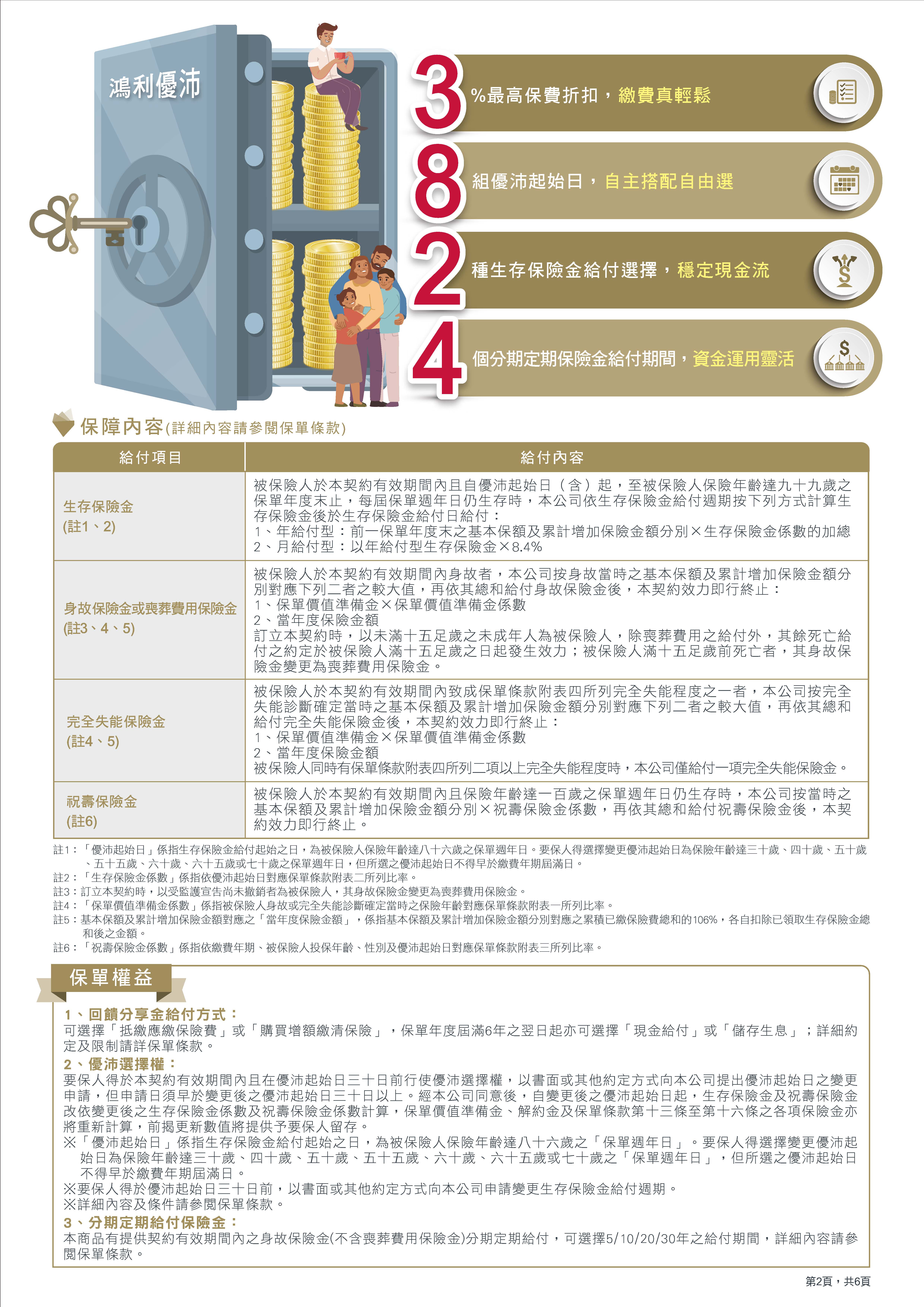 鴻利優沛利率變動型還本終身保險
