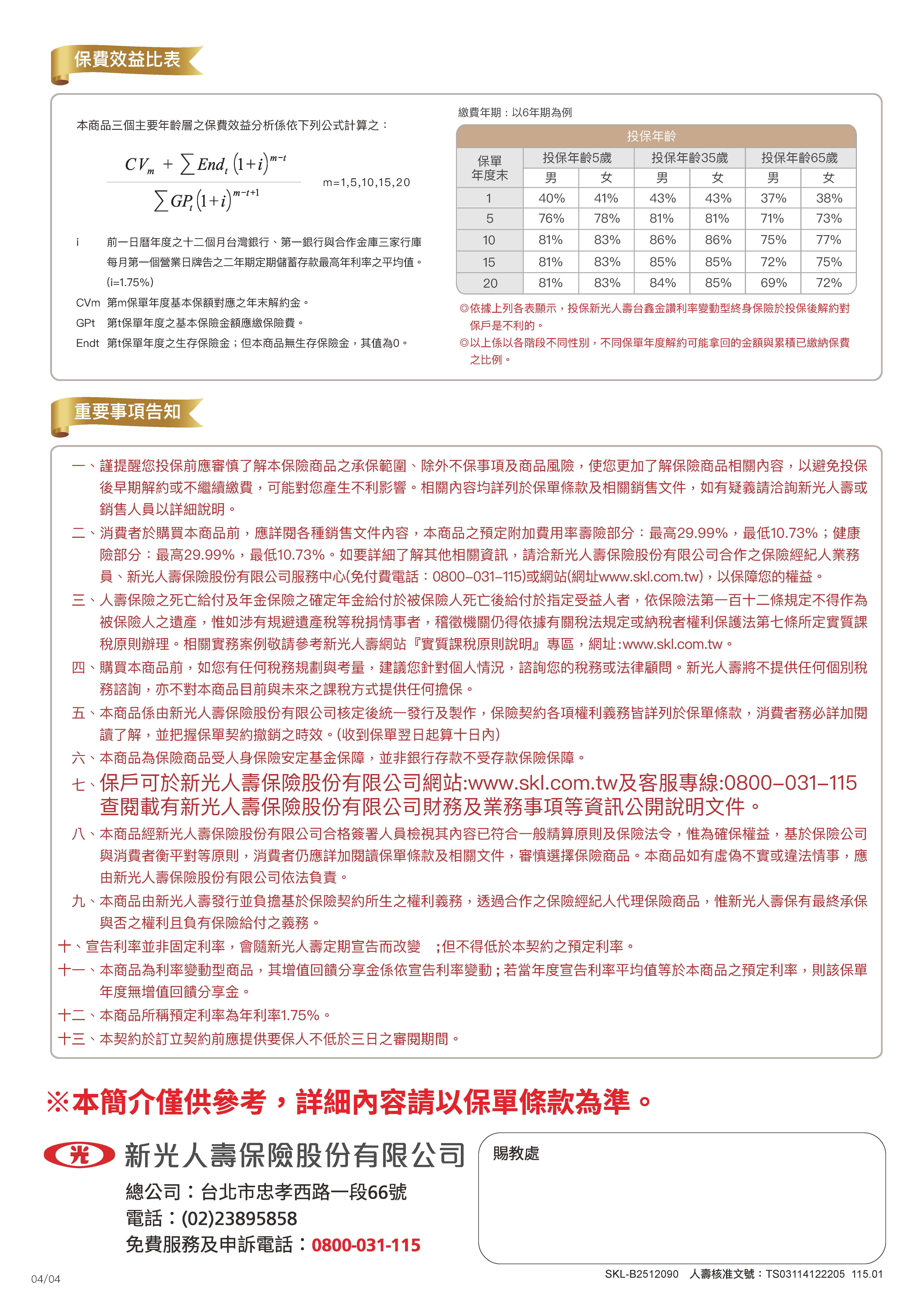 台鑫金讚利率變動型終身保險